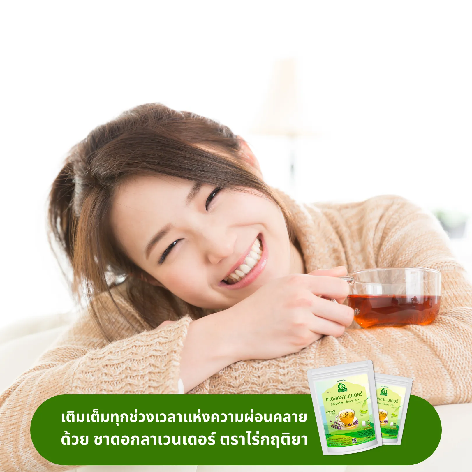 ชาดอกลาเวนเดอร์ ตราไร่กฤติยา (Lavender Flower Tea) ผลิตจากดอกลาเวนเดอร์ 100% ไม่มีส่วนผสมจากสมุนไพรชนิดอื่น ไม่มีน้ำตาลและคาเฟอีน บรรจุในซองอลูมิเนียมฟอยด์ซิปล็อคที่ช่วยเก็บรักษาคุณภาพของชาได้ยาวนาน มีให้เลือก 2 ขนาดคือ ขนาด 15 ซองชา และ 36 ซองชา สะดวกต่อการพกพาและใช้งานในทุกสถานการณ์