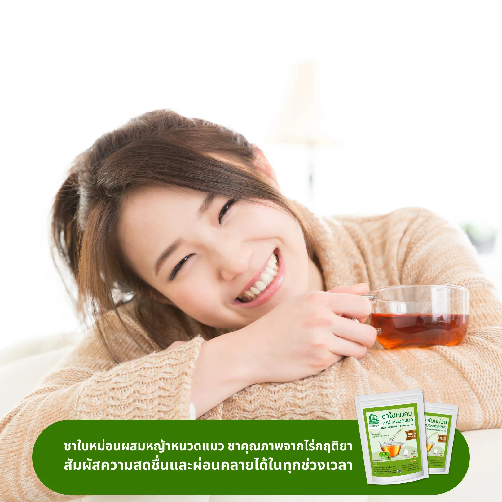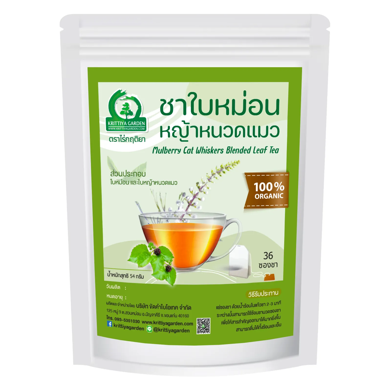 - ชาใบหม่อนผสมหญ้าหนวดแมว คัดพิเศษจากไร่กฤติยา