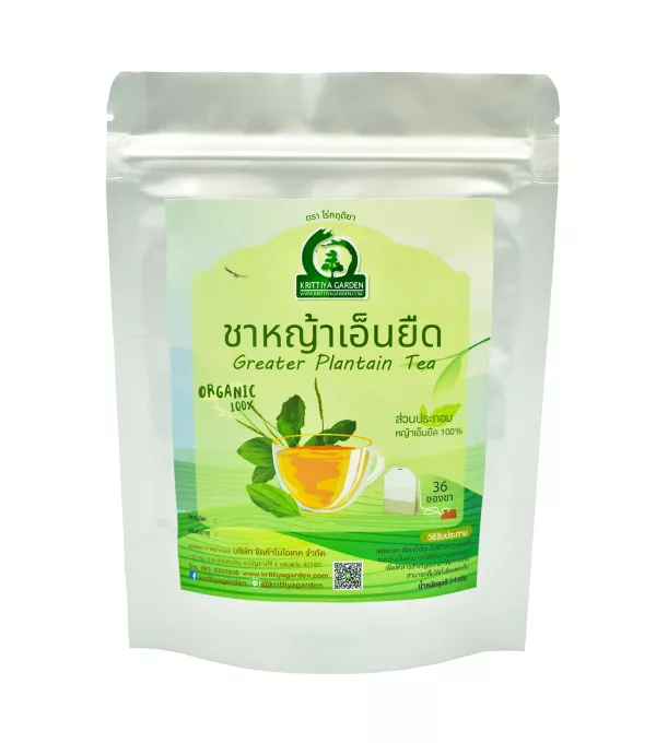 ชาหญ้าเอ็นยืด ตราไร่กฤติยา ผลิตจากหญ้าเอ็นยืด 100% ไม่มีส่วนผสมจากสมุนไพรชนิดอืนๆ ไม่มีน้ำตาลและคาเฟอีน บรรจุในซองฟอยล์ซิปล็อคง่ายต่อการจัดเก็บและรักษาคุณภาพของชาได้ยาวนาน ในรูปแบบซองชา ทำให้ง่ายต่อการชงดื่มและพกพาสะดวก